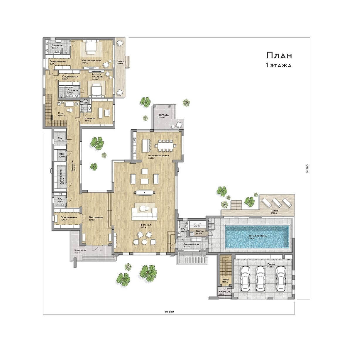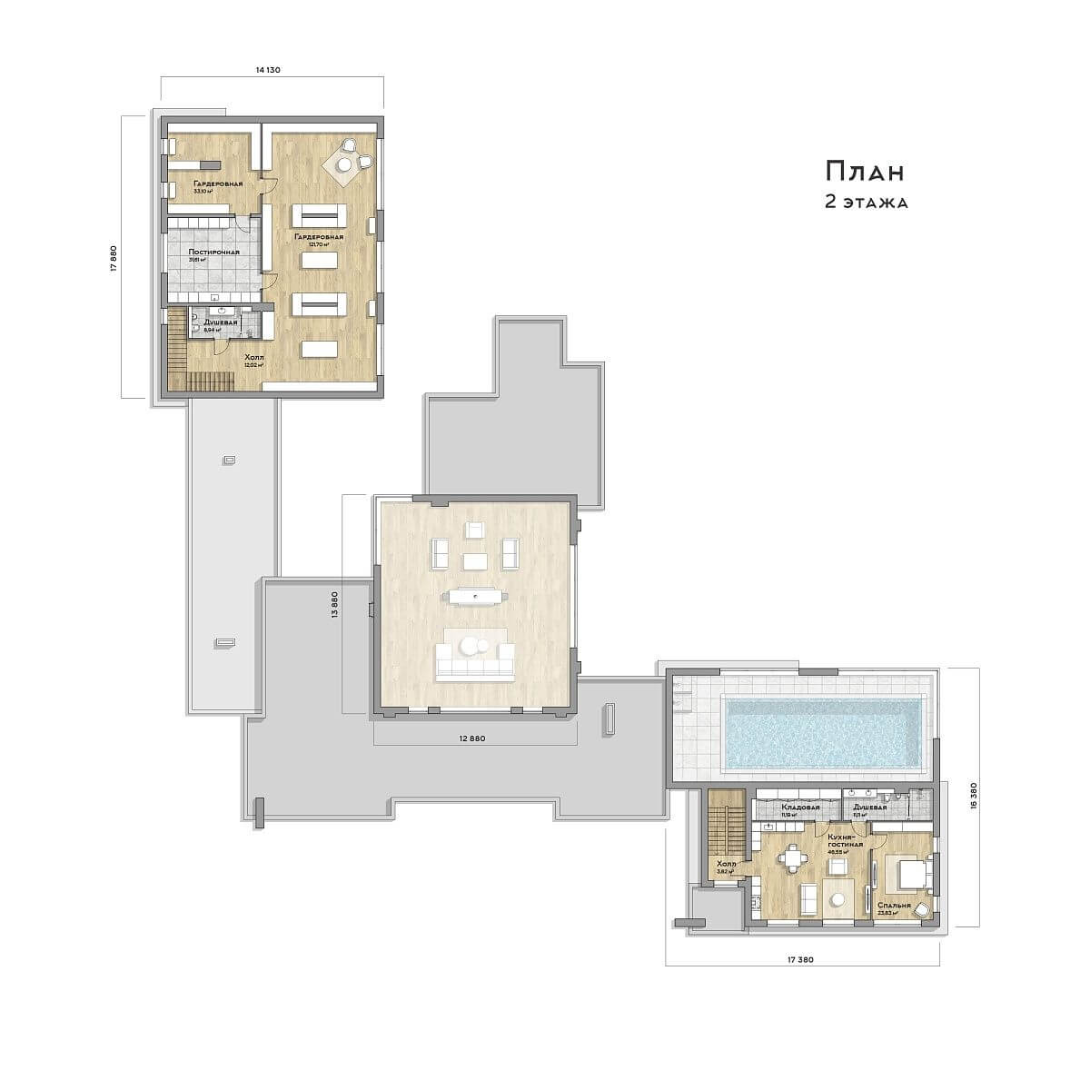 • Двухсветная гостиная высотой до 6 метров с панорамным остеклением