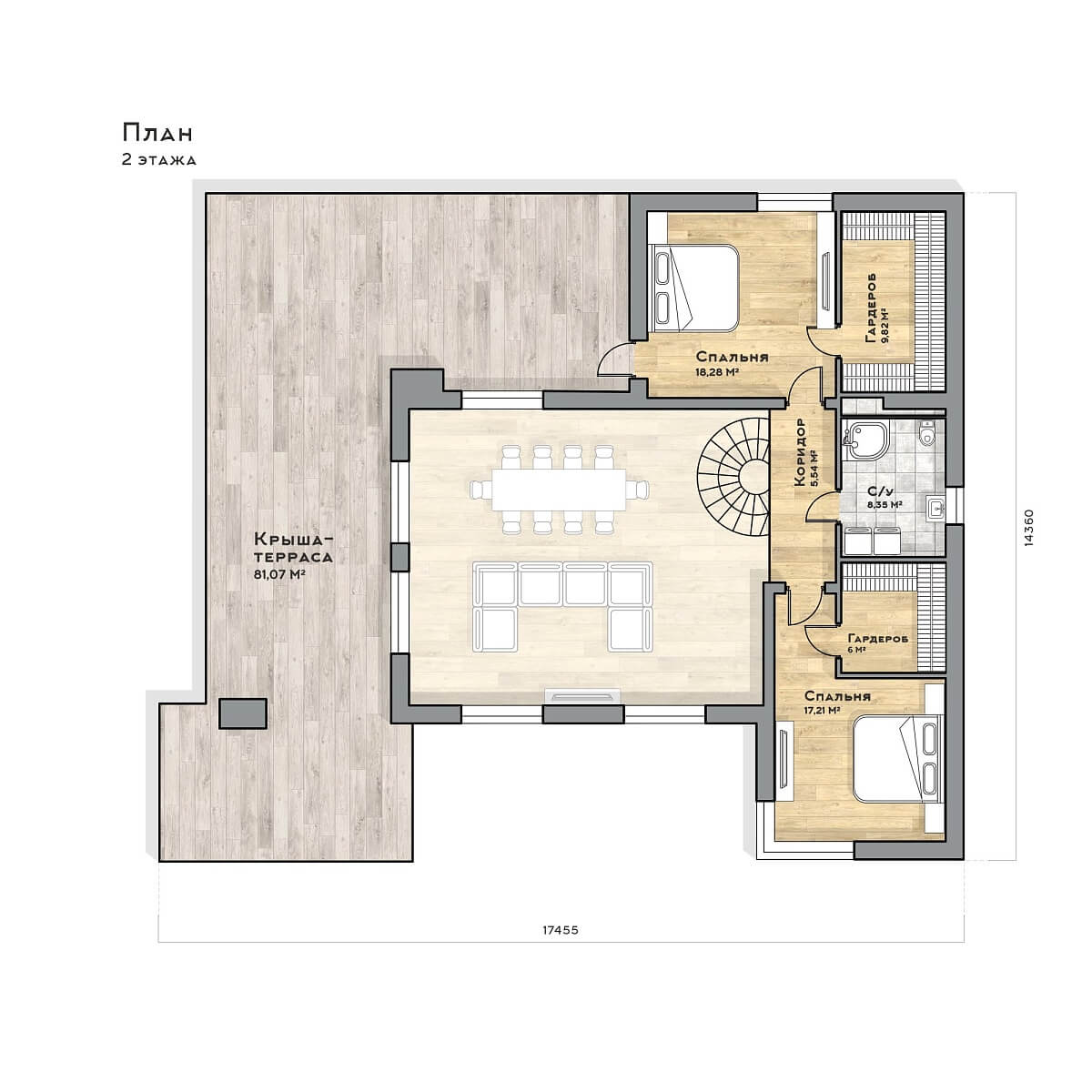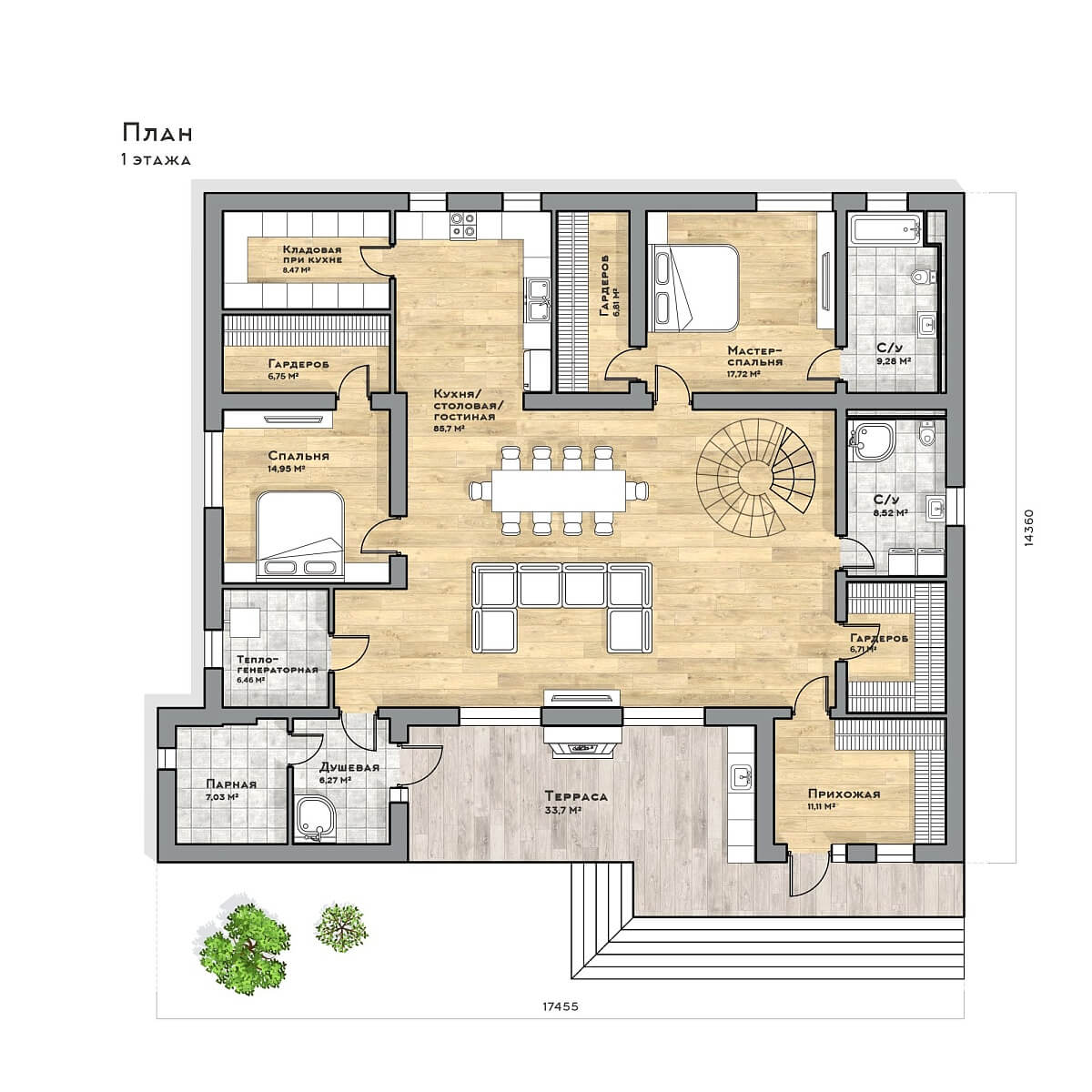 Метраж указан по контуру внешних стен, включая открытые пространства.