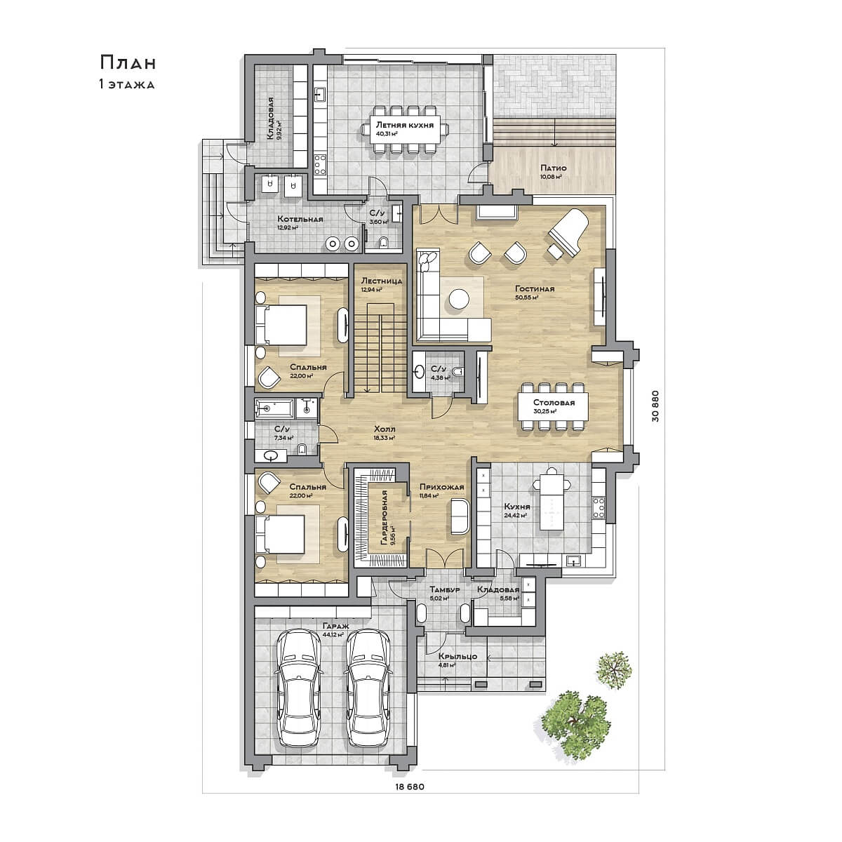 Дом Ривьера - проект для большой семьи, где всё подчинено уюту и гармонии. Учтены все нюансы: от места для рояля до зоны барбекю с казаном для плова.