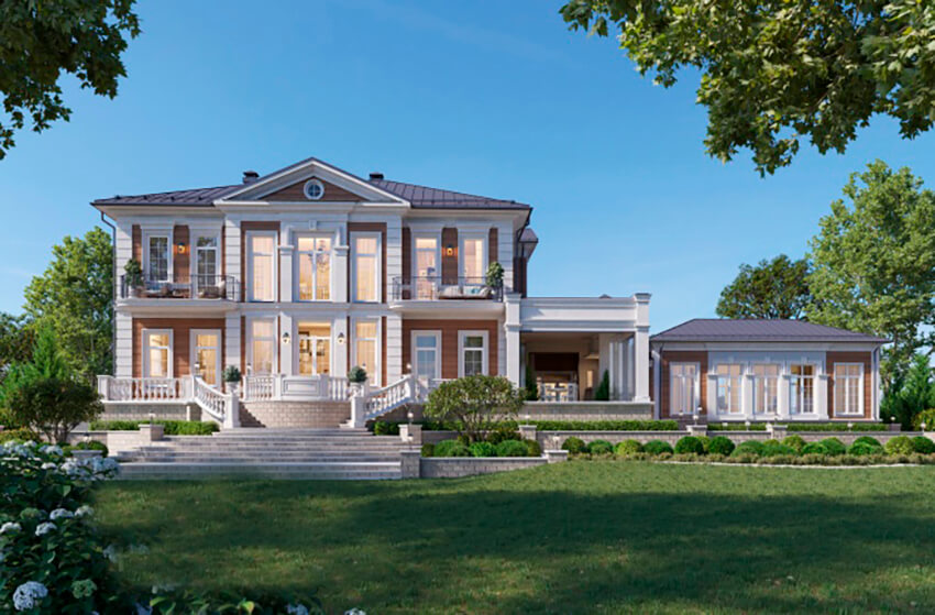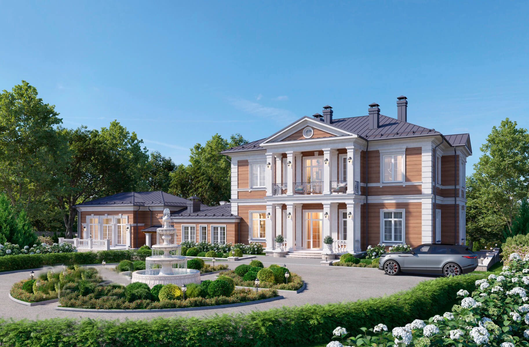 Проект Ультрамодерн - особенный дом в духе старорусской усадьбы для большой семьи с тремя детьми. Архитектура воссоздает традиции русской усадьбы с современным комфортом.