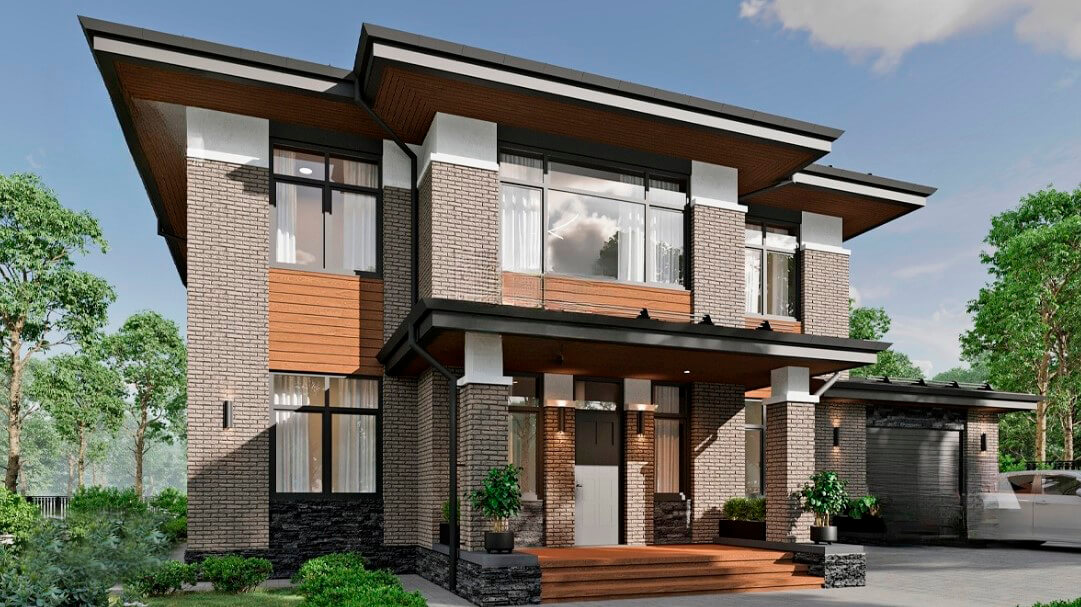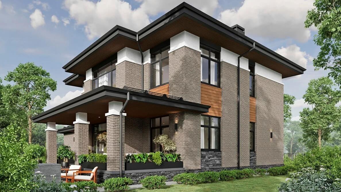 Проект дома Уандерс предлагает рациональную планировку с четким разделением на общие и приватные зоны. На первом этаже расположены просторная гостиная, кухня и вспомогательные помещения, на втором - комфортные спальни.
